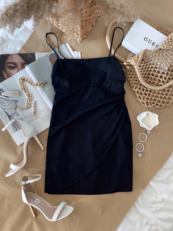 Чорна сукня Zara колір насичений чорний, на фото може засвічувати ▫️розмір XS ▫️пог 40-42 ▫️пот 36 ▫️поб 48 ▫️довжина 80 збоку є блискавка 63% поліестер 33% віскоза 4% еластан