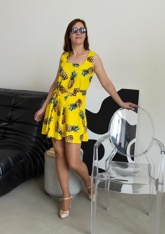 Короткое платье, которое подчеркнет твою индивидуальность. Легкое, стильное и чрезвычайно удобное - это яркое желтое платье с ананасным принтом создано для незабываемых моментов и долгих летних прогулок в кругу друзей. А-силуэт красиво подчеркивает фигуру и не сковывает движений. Ткань приятная к телу и дышит в жаркие дни. Съемный пояс позволяет играть с образом - акцентируй талию или носи свободно. Универсальный вариант - с кедами в день или с босоножками на свидание. Размеры: XS, S, M, L, XL Состав ткани: 70% вискоза, 30% хлопок Производитель: Capricious (Украина)