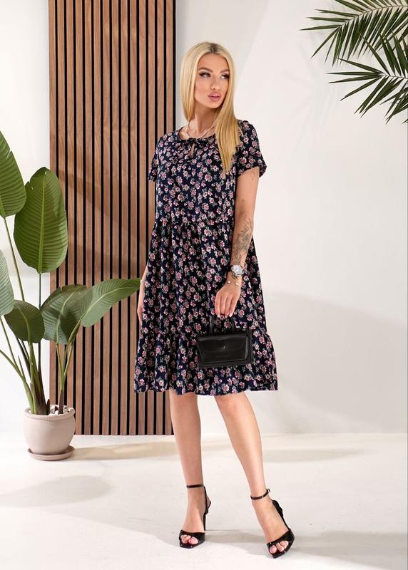 Сукня арт 3472 Тканина: суперсофт, сукня вільного крою, виріз-крапелька зав'язується на горловині. Виміри по тканині: (42-44) ОГ 94 ОТ 98 ОС 140 Довжина виробу 95см (46-48) ОГ 98 ОТ 102 ОС 146 Довжина виробу 97см (50-52) ОГ 106 ОТ 108 ОС 155 Довжина виробу 100см (54-56) ОГ 112 ОТ 116 ОС 160 Довжина виробу 102см