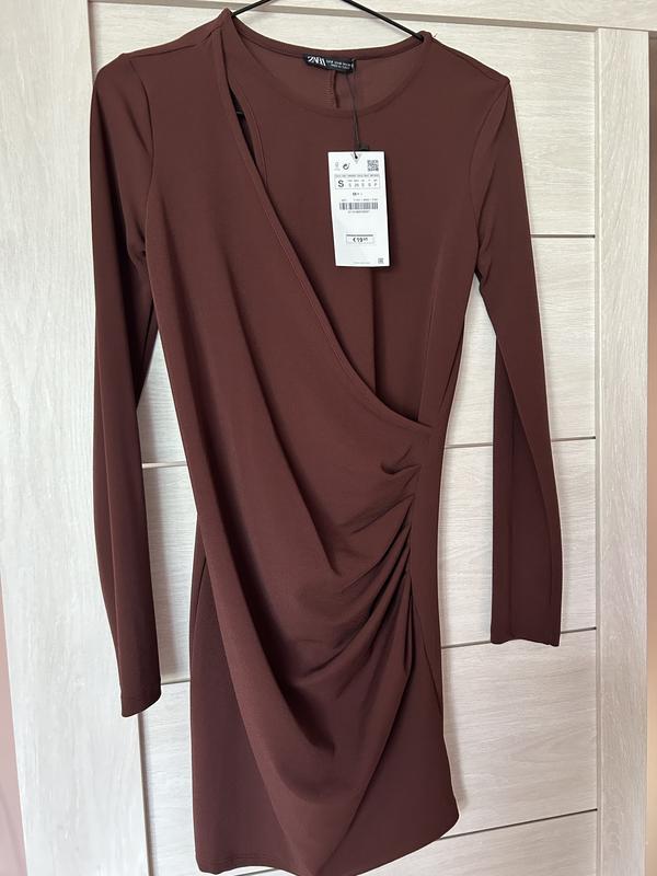 Нова сукня Zara в трендовому шоколадному кольорі в розмірі S, добре тягнеться Довжина 85 см Ог 44-50 см От 34-40 см Об 45-50 см