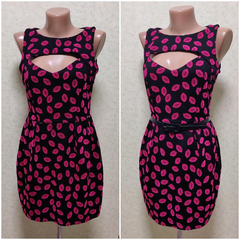 Платье с красивым оригинальным принтом Хорошо тянется Поцелуйки бархатные, мягкие на ощупь Бирки с размером нет, ориентировочно размер S Замеры: длина 81, под руками 43, пояс 37, бедра 50 Состояние хорошее, но не идеальное В некоторых местах, в основном на сгибе ткани, поцелуи немного затертые Пояс на фото не продается