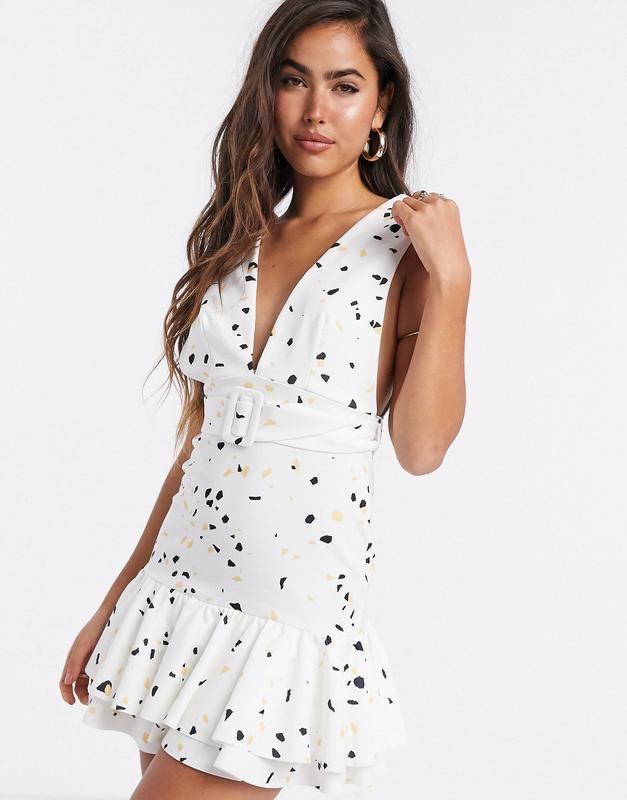 Сукня міні в горошок з глибоким вирізом і ременем ASOS DESIGN Uk 8 Пог 40-43 Піт 33-35 Поб 45 Довжина 82