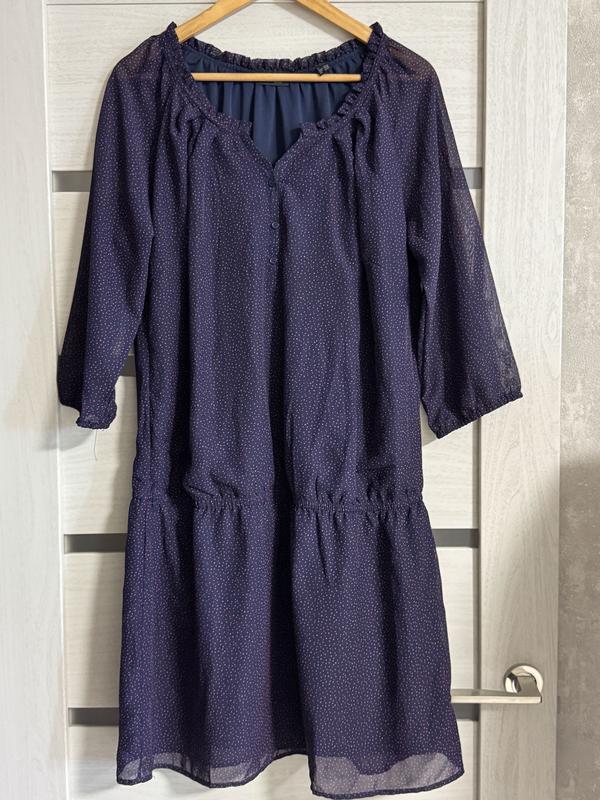 Женское платье TCM Tchibo разм.44/46 на наш 52/54. Платье на подкладке. Состав: 100% полиэстер. Полуобъем груди-60см Полуобъем талии-56см полуобъем резинки-50см Полуобъем бедер-66см Длина изделия по спине-94см Длина рукава от горловины-53см Состояние - новый (без бирки)