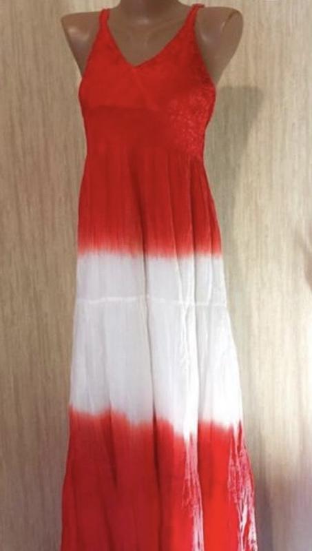 Довга літня сукня на бретелях з мереживом та ефектом омбре, червоно-біла, універсальний ро...