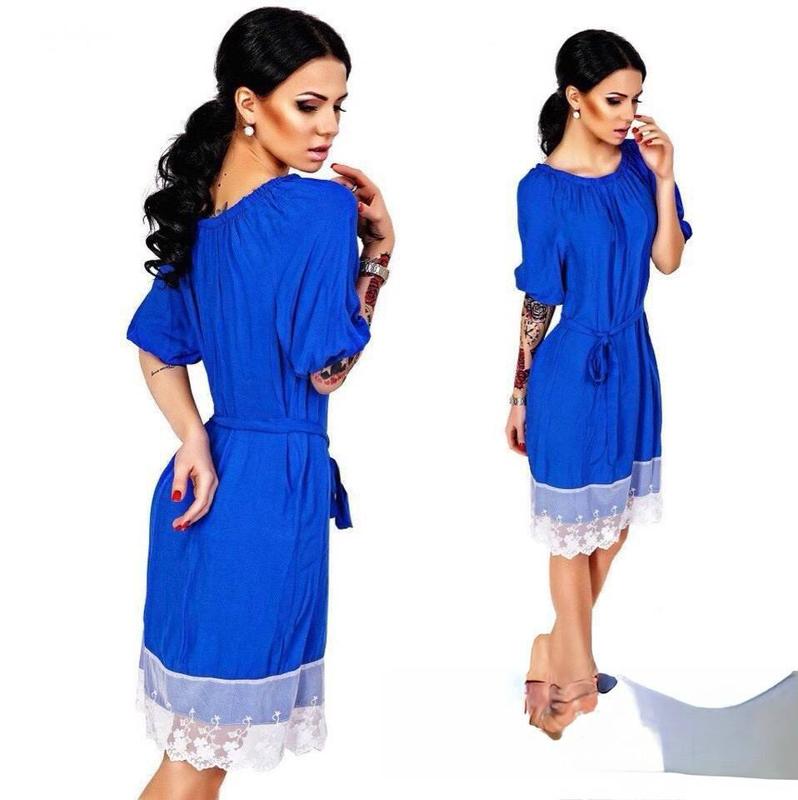 Сукня #97 Синій 42-44,46-48. Мʼята 42-44 Тканина штапель та дороге мереживо