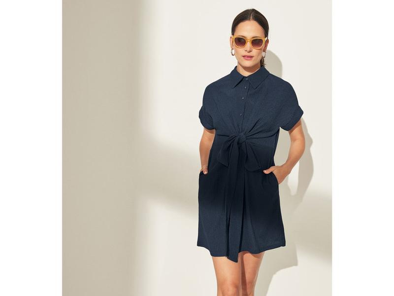 ESMARA Жіноча сукня по- переду на зав’язку від відомого бренду . Виготовлено з 70% переробленого матеріалу . З модною складчастою структурою . Вставлена робоча планка з ґудзиками , комірець. Злегка опущені плечі . По- боках дві кишені Оптимальна посадка завдяки еластану LYCRA Матеріал : 98% поліестер 2% еластан . Структура матеріалу , як рубчик дрібний . Добре тягнеться . ✅Колір : Темно - синій ✅Розмір : S ( 6 штук); М (1 шт); L (2 шт) ✅Заміри : S - ПОГ 52; ПОТ 49; ПОБ 53; довжина 87 см ✅Заміри : М - ПОГ 59; ПОТ 53; ПОБ 58; довжина 89 см ✅Заміри : L - ПОГ 60; ПОТ 52; ПОБ 62; довжина 91 см ✅Виробник : Німеччина Дивитися по замірах 👆