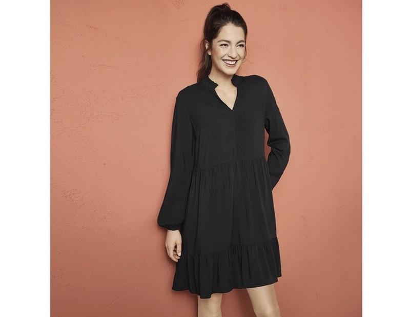 ESMARA Жіноча сукня із віскози від відомого бренду . Сукня вільного крою з легкою та приємною до тіла віскозної тканини . З V - образним вирізом та воланами . Рукав довний з гумкою на кінці Матеріал : 100% віскоза ( холодок) Охолоджує в спекотну погоду Не тягнеться ✅Колір : Чорний ✅Розмір : 36/38 ; 38/40 ; 42/44 (євро) ✅Заміри : 36/38 - ПОГ 50; ПОТ 46; ПОБ 62; рукав 64; довж 95 см ✅Заміри : 38/40 - ПОГ 54; ПОТ 48; ПОБ 65; рукав 65; довж 94 см ✅Заміри : 42/44 - ПОГ 57; ПОТ 52; ПОБ 70; рукав 62; довж 91 см ✅Виробник : Німеччина Дивитися по замірах 👆