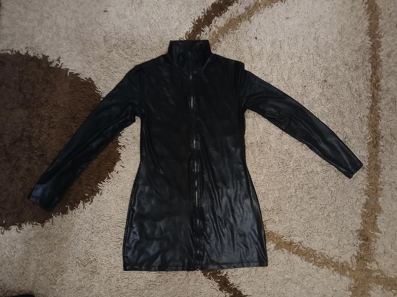 ткань тоненькая, эко-кожа, у меня размер S и немного большая в талии, поэтому на M должна быть идеально, ткань хорошо тянется, замеры на фото