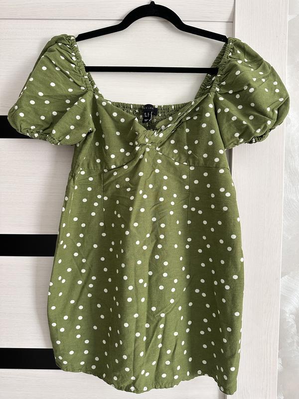 Зелена сукня від New look в горох. стан ідеальний. Розмір 12. Заміри: ПОГ 44, ПОТ 42, ПОБ 51, довжина 76. на спині резинка. Дивіться інші мої оголошення