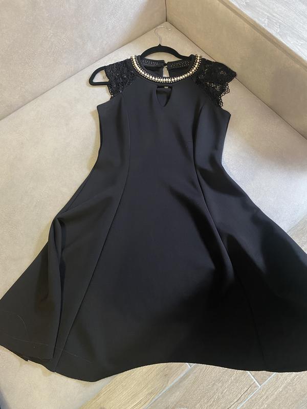 Сукня класична чорна з перлинами на комірці. Розмір S-M.