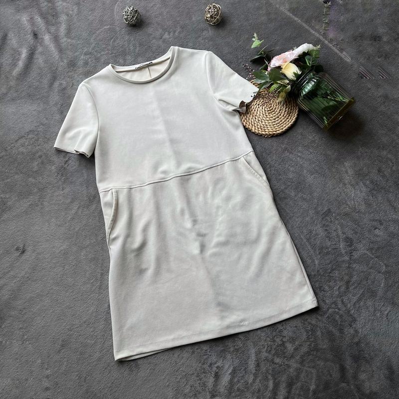 Zara p. S Міні сукня з мікровельвету молочного кольору, з кишенями, вільного крою Довжина 80 см Пог 45 см (100653)
