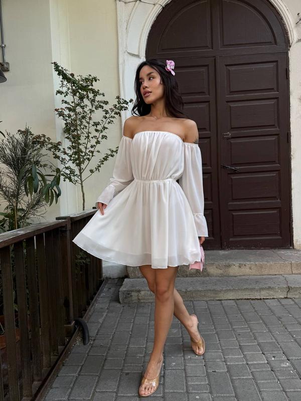 Женское летнее шифоновое платье не просвечивает! с длинными рукавами и обнаженными плечами