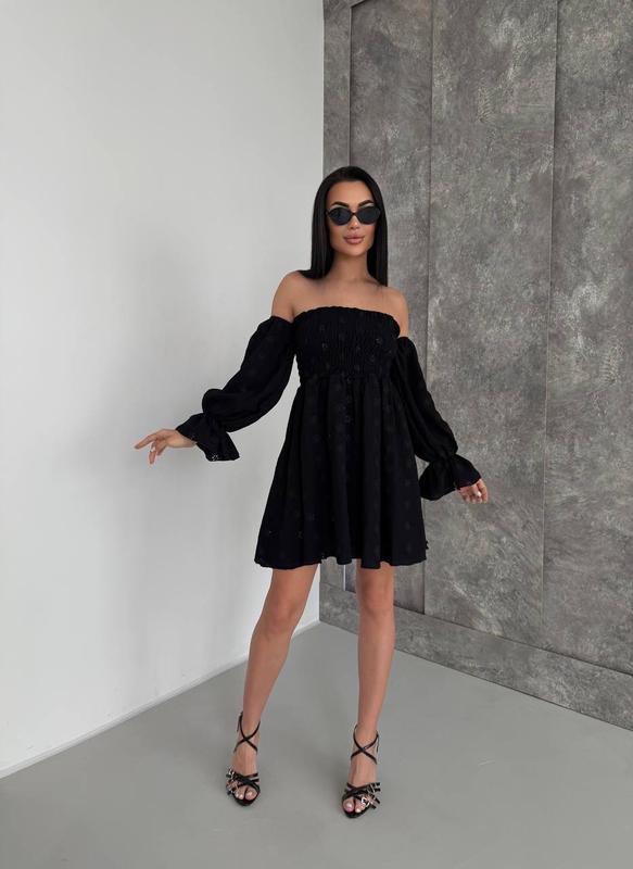 Жіноча літня чорна сукня муслін прошва бавовна з довгим рукавом коротка міні