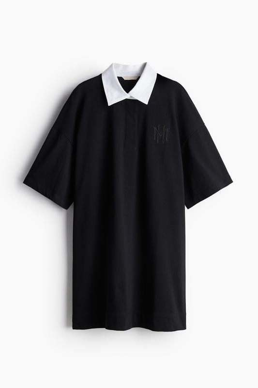 Короткое платье из плотного хлопкового трикотажа с рубашечным воротником и скрытой планкой на пуговицах из поплина. Свободный крой с спущенными плечами, короткими рукавами и вышивкой на груди. Размер срезано день L - ХL потому что оверное платье Груди 64 Длина 88 Плечи спущенные 64 🛑❗Есть загрязнения от примерки