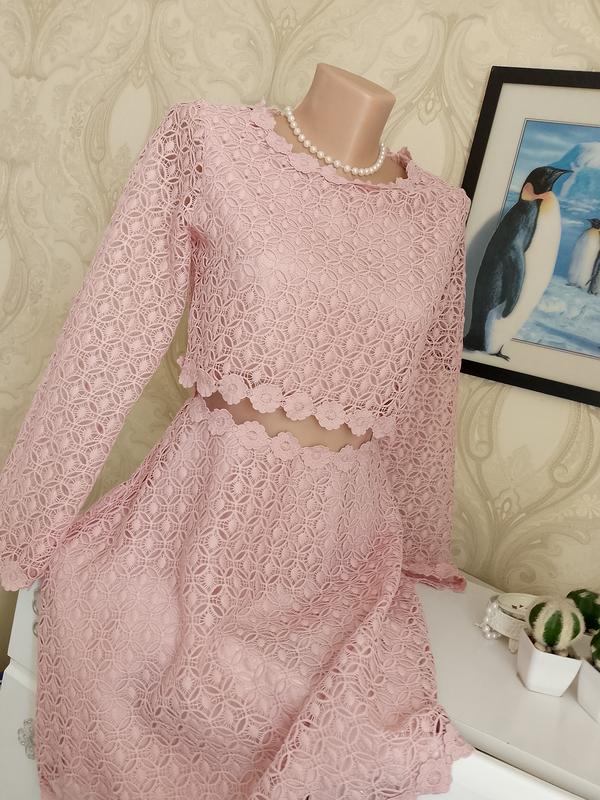 Платье кружевное кружевое гипюровое пудровое однотонное блуза топ + юбка женская