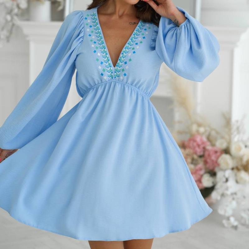 #Сукня Артикул: 802-7524 Цвет: белый, голубой, розовый, лиловый. Размер: S-М (42-44),L-ХЛ (46-48) Материал: американсный креп + вышивка Талия и манжет на резинке