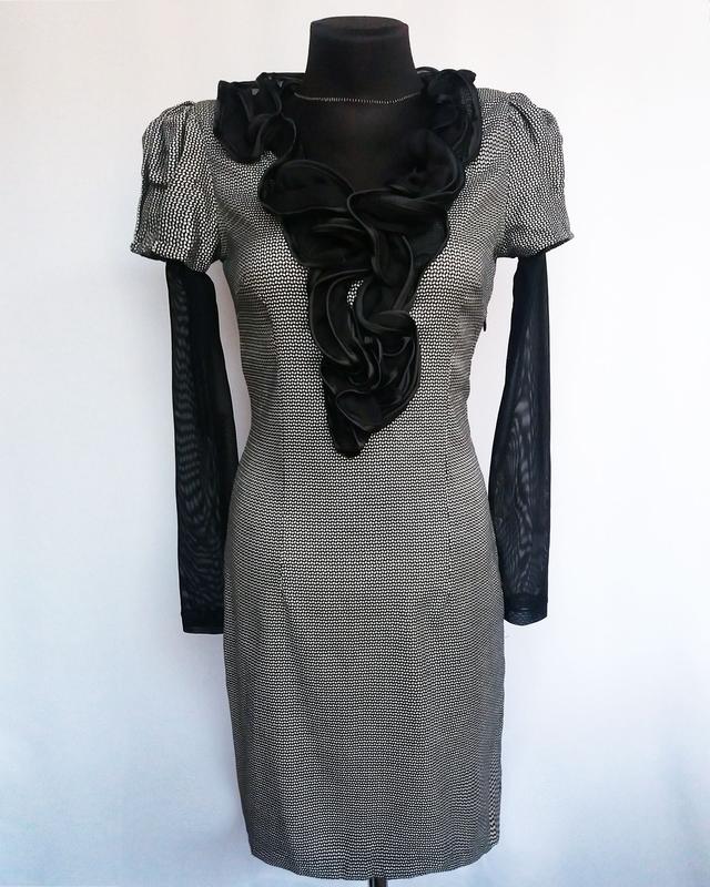 Новинка! Стильное и эффектное платье. Красивый крой по фигуре, короткий рукав дополняется сеточкой. Универсальный черно белый принт. Декорировано воротником из рюш. Отличное качество пошива и материала, турецкое производство. Стильно и эффектное, смотрится очень классно! Новое, в наличии! Суперцена!!! Только реальные фото, личные! В наличии размер 36 евр., на наш 42-44 тянется Отличное качество Производство Турция Много женской одежды и сумок, смотрите другие мои объявления http://shafa.ua/member/anna_rusynka/clothes