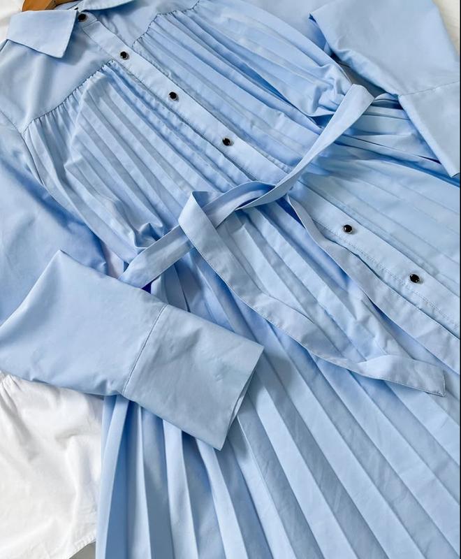 блакитна сукня з плісируванням розмір S поліестр напівобхват: груди-вільно(56см) талія-вільно стегна-вільно рукав-63см довжина сукні-95см
