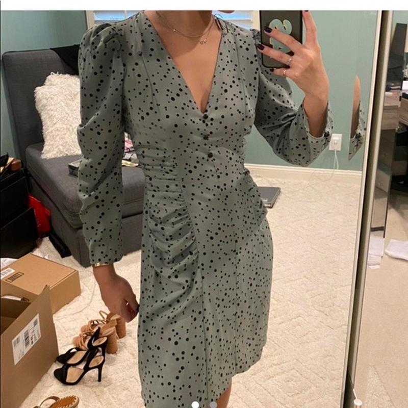 Стан нової без нюансів 100% віскоза ,на дотик тканина як шифон Не просвічує Для романтичної душі Груди 46 Талія 34,збоку на замку Бедра 52 має йти вільно Рукав 56 Плечі 34 Довж 89