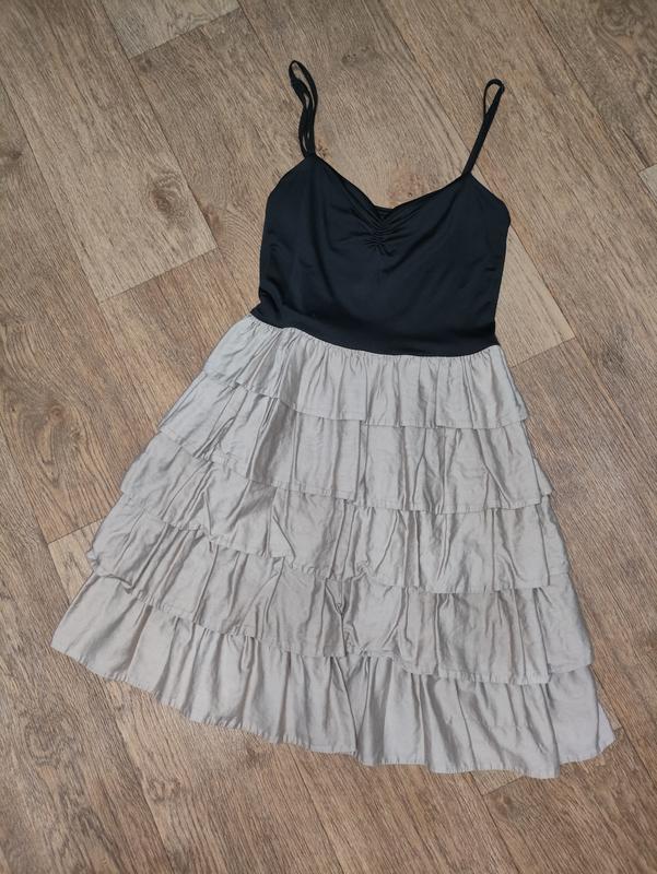 состояние идеально замеры есть на фото верх платья (майка) регулируется бретельками, ткань тянется низ, если разгладить, будет выглядеть более пышным