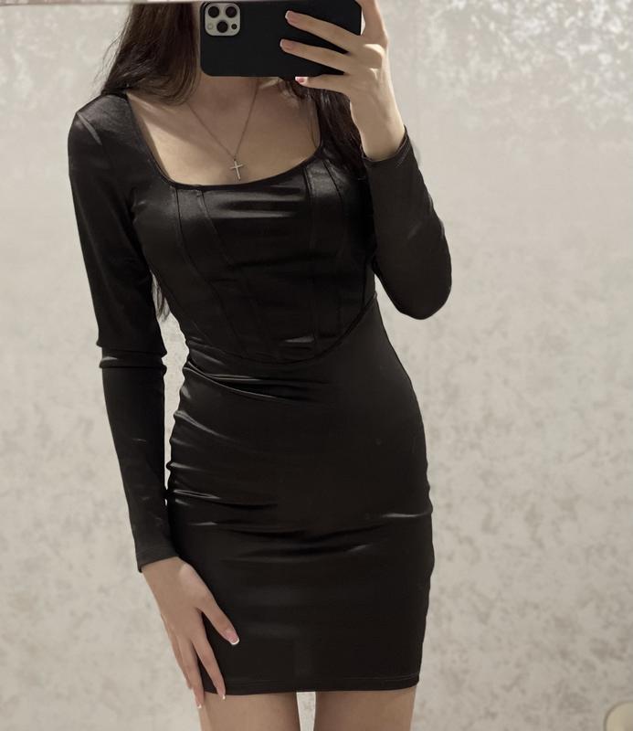 📌Стан новий, Добре тягнеться Розмір XS, але підійде і на S ОГ 31-36 ОТ 32 - 36 ОБ 35-42 довжина сукні 82 см довжина рукава 59 см дефекти відсутні Сукня з гладкого стрейч-матеріалу з легким блиском. Склад: 95% поліестер, 5% еластан — приємна до тіла, тягнеться.