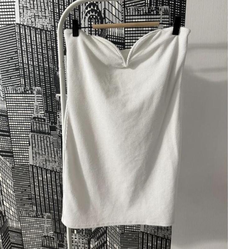 Сукня в розмірі XL,з текстурної тканини В районі топа є підкладка, на спинці просиліконена полосочка, зверху спереду вставлена «кісточка» щоб тримало форму Нова, сток Підійде до 18, тканина добре тягнеться і лягає по фігурі Довжина 72 см ПОГ 50-64 см ПОТ 50+ см ПОБ 55+ см