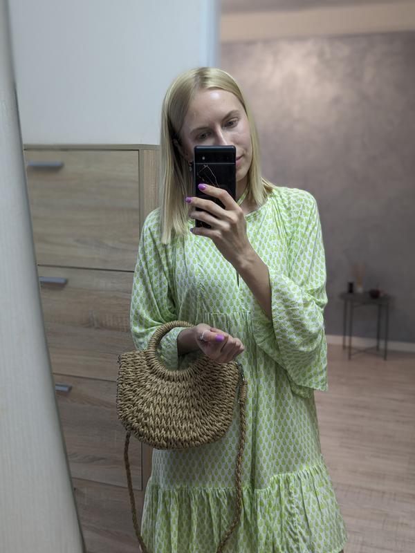 Платье очень легкое, и приятное. Стан идеален, одевала несколько раз. Будет классно компоновываться с кроссовками, а также босоножками, шлепками. Длина по спинке 78см, ПОГ 50см, длина рукава от начала ворота 53см Одетая на рост 168, грудь 87см.