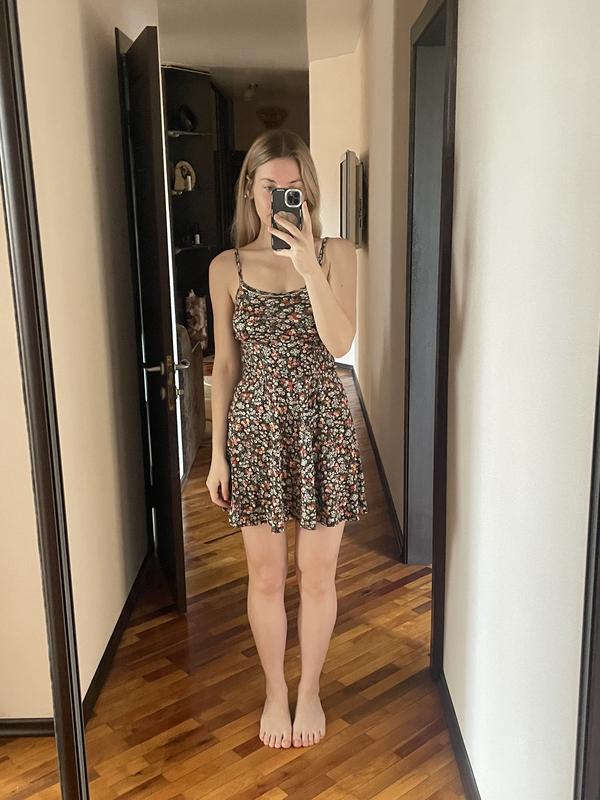 Коротка легка сукня, змійку краще замінити. На фото вдягнена на мене, маю розмір S, підійде також на М