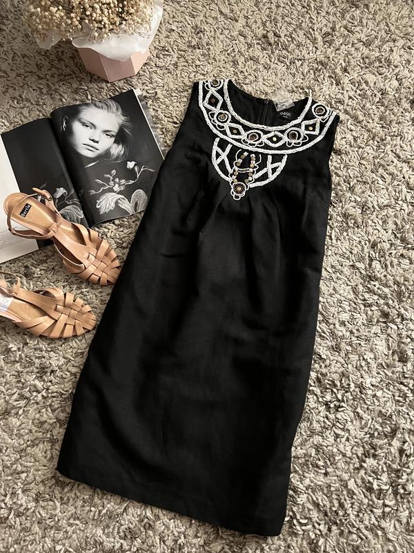 Сукня з вишивкою бісером8/34, льон/віскоза, довжина 81 см, н/о в грудях 44-46 см, далі пряме, н/о в бедрах 48 см, є кармани