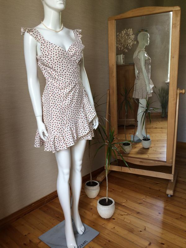 Платье с запахом, указанный размер М, но маломерит. Замеры предоставлены при сложенном по боковым швам состоянии, запах очень глубокий,(по 40 см из каждой стороной, то есть можно делать больший объем). Длина 83 см. ПОГ 42 см, ПОТ 35 см, ПОБ - покрой свободный).