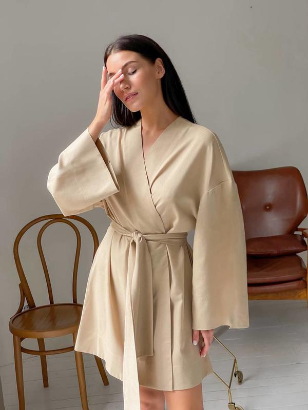 Сукня кімоно халат на запах плаття льон