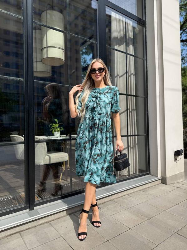 #445/2tas Розміри:42-44,46-48 Тканина: Американський креп. Колір:зелений,сірий,ментол,бежевий,електрик. Талія без резинці. Виміри напівобхват Плаття вільного фасону #445/2 Розмір 42/44 ОГ 45см ОТ 43см ОБ йде на розширення Довжина 103см Довжина рукава 32см Розмір 46/48 ОГ 50см ОТ 47см ОБ йде на розширення Довжина 110см Довжина рукава 34см