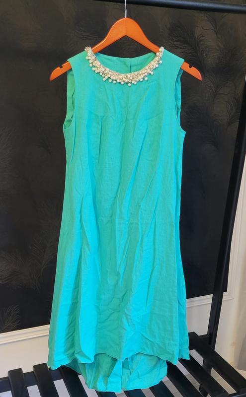 Платье из льна украшено бусинами