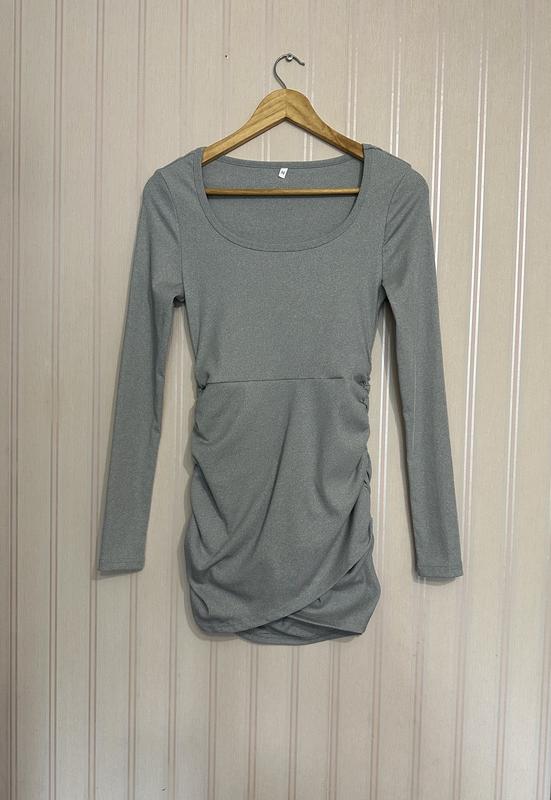 Красивое серое платье в рубчик Новое, но без бирки Элегантно смотрится Размер М( на S тоже хорошо подойдет) Замеры: пог-37см, пот-32см, поб-40см, длина рукава -62,5см, длина по спинке -72см( если расправить складки-82см)