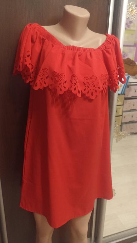 женское легкое платье туника с открытыми плечами на размер 46-48 длина 74 см