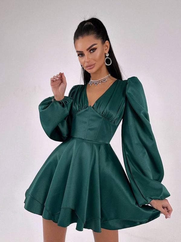 ❗ексклюзив❗праздничное атласное платье корсетное с двойной юбкой и рукавами фонариками дек...