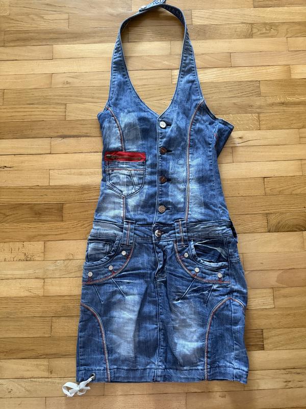 Джинсовий комбінезон-плаття в гарному стані. Розмір xxs/xs Довжина 67 см Ширина в талії 34 см. Ширина в грудях 30 см.