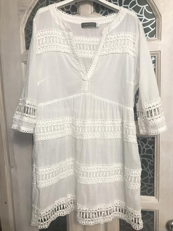 Біла бавовняна міні сукня туніка прошва в стилі бохо бренд mint velvet