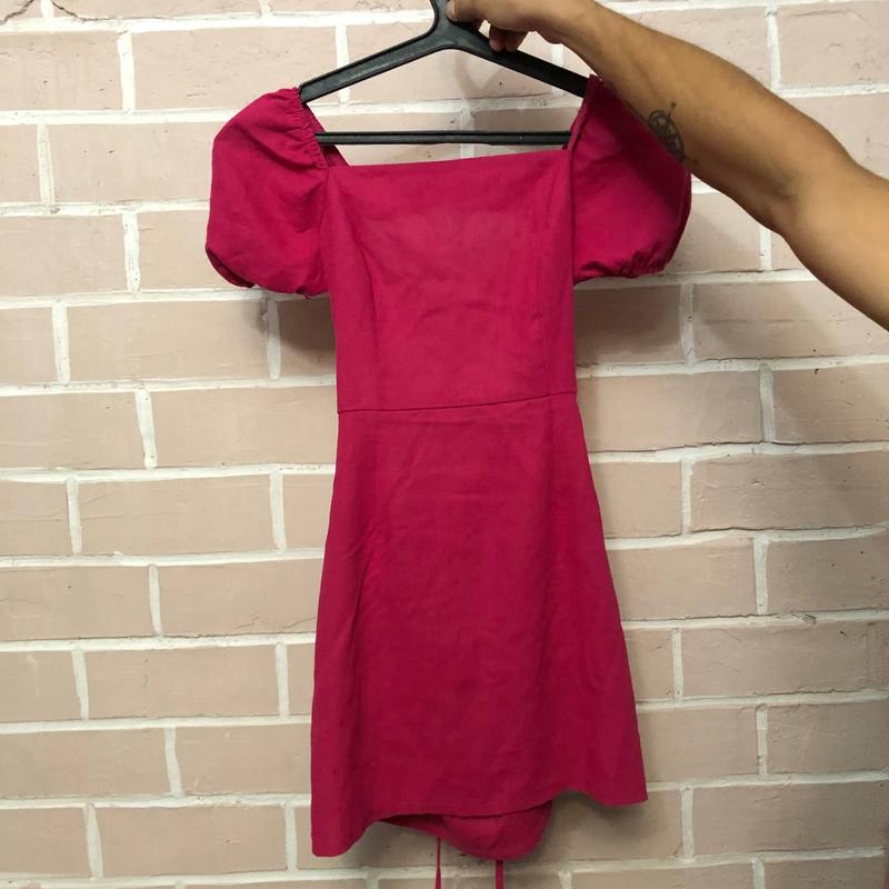 Платье ярко розового цвета, без дефектов) Спина открытая Тканина льон Размер S