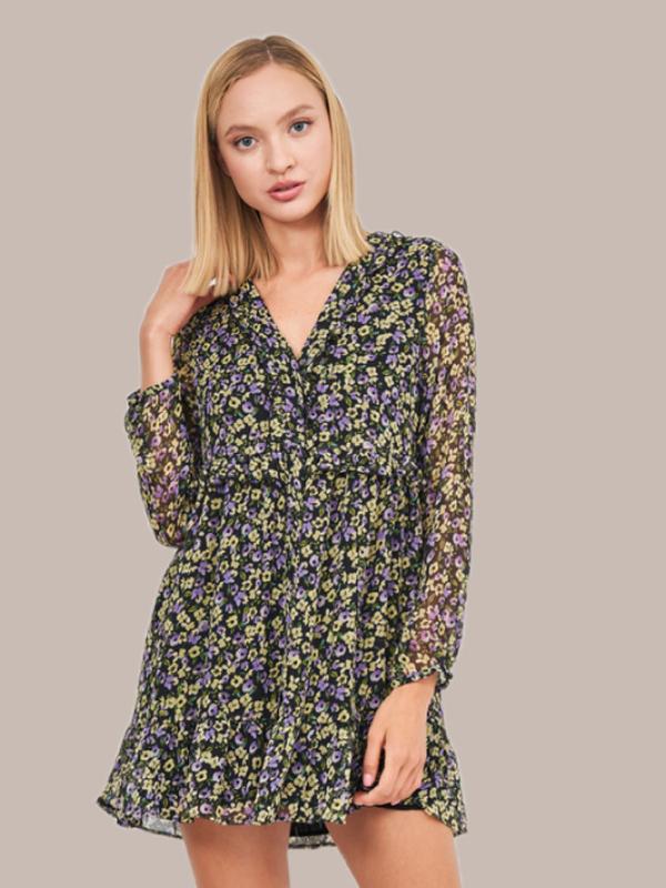 Женское платье - мини бренда ZARA ( Румыния ) с цветочным принтом, р. 44-46, с длинными рукавами ( 55 см. ), рюшами и воланом по краю; на пуговицах, обтянутых тканью в тон платья; с эластичным поясом, на подкладке, ткань- вискоза/шифон, ширина плеча- 5 см., ПОГ- 40 см., ПОТ- 40 см., ПОС до 50 см., общая длина- 72 см., только примерилась- состояние отличное, цена - 440 грн.