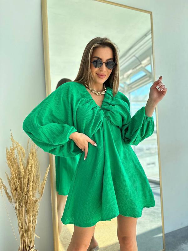 Женское летнее муслиновое платье мини, короткое платье с длинными объемными рукавами свобо...