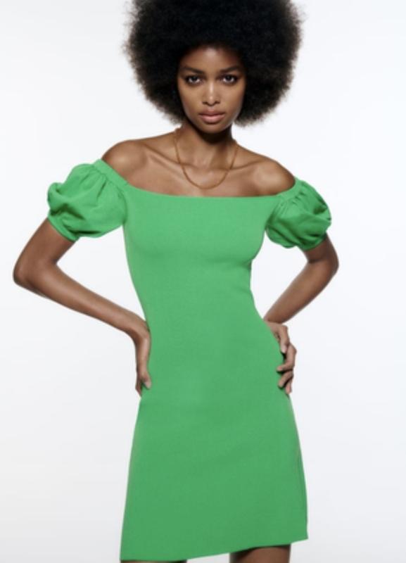 🌿зеленое платье от Zara красиво тянется Размер:М Замеры:ПОГ 31 см, ПОТ 27 см, ПОБ 48 см, длина 80 см