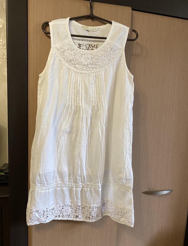 Бавовняне біла сукня сарафан з мереживом