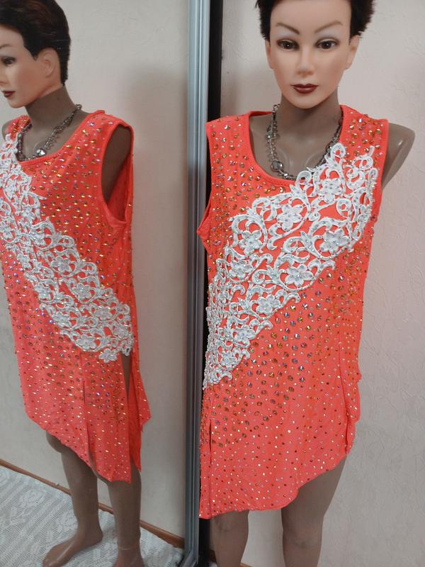 Платье женское, для бальных танцев,фотосессии, для праздничных выступлений. В комплект входит : Платье,два браслеты из основной ткани и два нарукавника.Весь комплект в идеальном состоянии, без недостатков и нюансов. Платье шлось по заказу.Вымеры изделия: пог: 53 см,пот 50 см, попостер: 55 см, длина изделия: длинная сторона : 100 см,короткая сторона: 67 см.Длина нарукавников: 47 см.