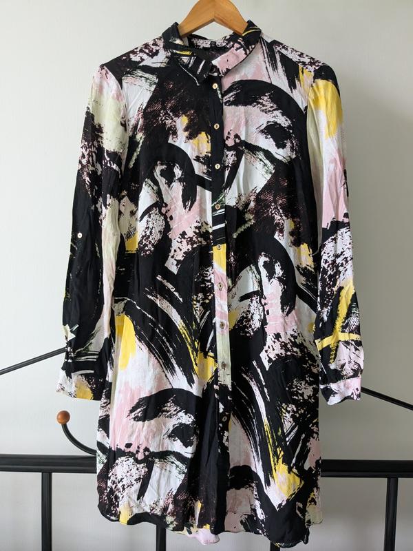 без дефектов, платье-рубашка не тянется и не просвечивается, размер по бирке 38 ЗАМІРИ: длина 92 полу охват груди 50 полу охват талии 50 полу охват бедер 53 длина рукава 61 длина рукава по внутреннему шву 42.5 полу охват рукава 17 плечи 40