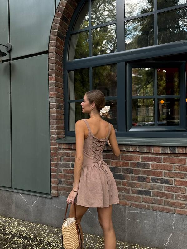 Женское мини платье комбез из жатки с завязками на спине, с шортами, короткое платье комби...
