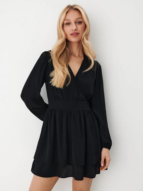 Чорна жіноча вечірня сукня з довгими рукавами.