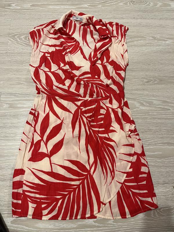 женского красно-молочного на запахах платья мини с v-вырезом и отложным воротником выполненного в стиле Casual из коллекции бренда Mango