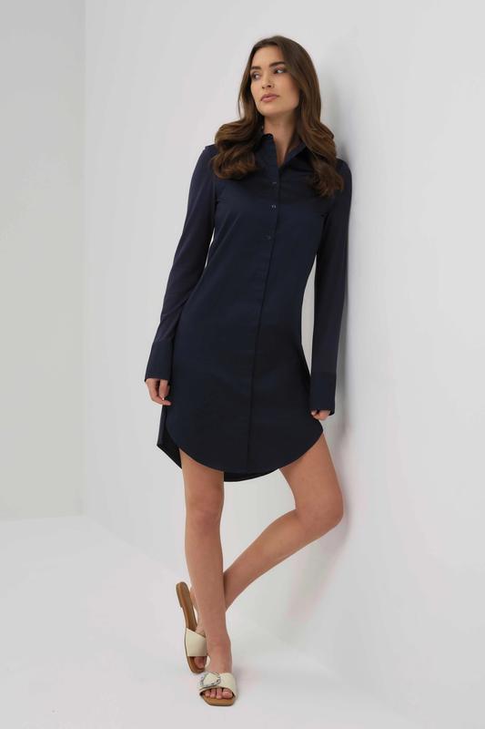 Тоненька сорочка-сукня Темно синього кольору Жіноча Плечі 41 ПОГ 48 ПОТ 43 ПОБ 53 Не тягнеться Довжина плаття по спинці 92 Довжина рукава 65, можна підкотити до 49