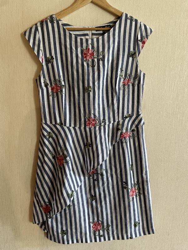 Розмір по бірці 52, по факту на L/XL Орієнтуйтесь на заміри: Напівобхват грудей 47 см Напівобхват талії 44 см Напівобхват стегон 55 см Довжина сукні від плеча 96 см